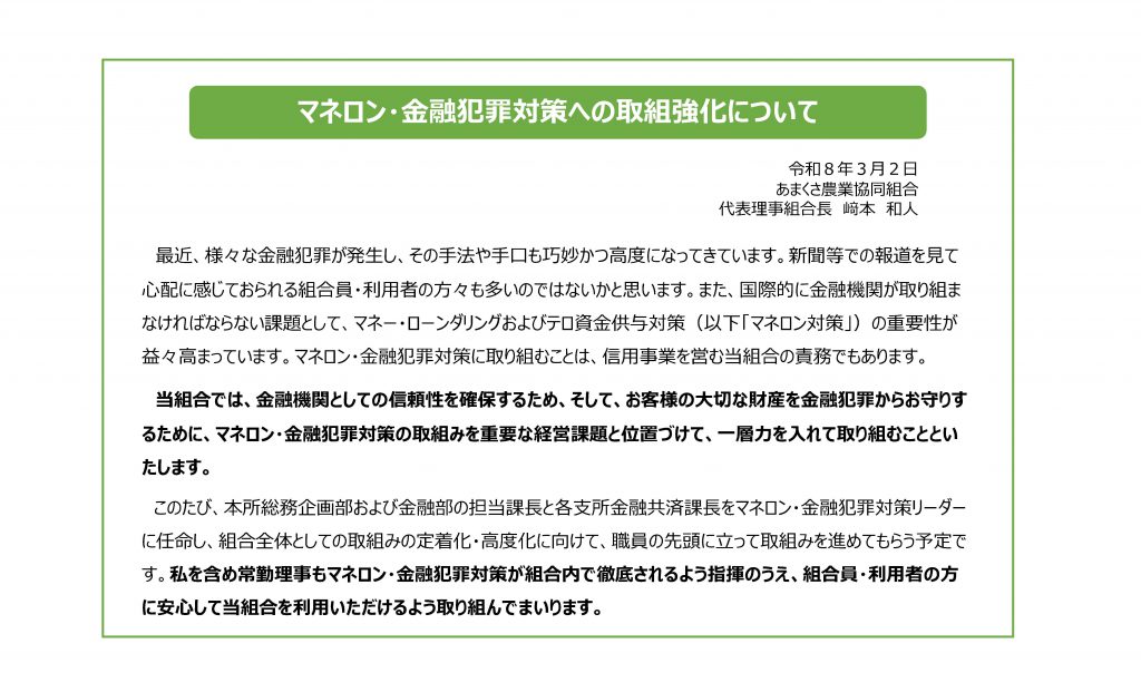 マネロン・金融犯罪対策への取組強化について